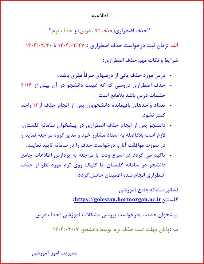 حذف ترم - حذف تک درس اضطراری