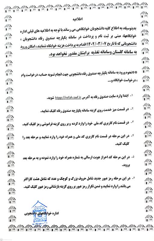 قابل توجه کلیه دانشجویان ساکن در خوابگاه های دانشجویی