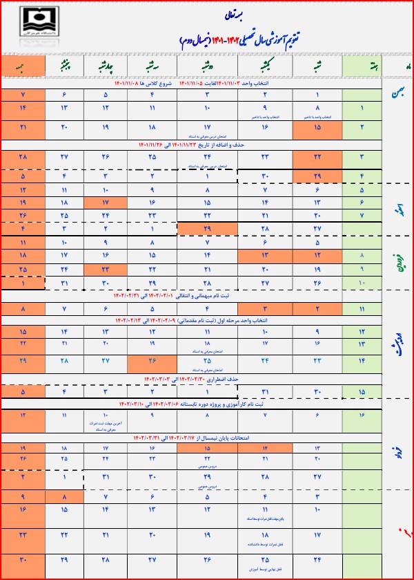 اطلاعیه شماره دو و مقررات انتخاب واحد در نیمسال اول 1402-1401