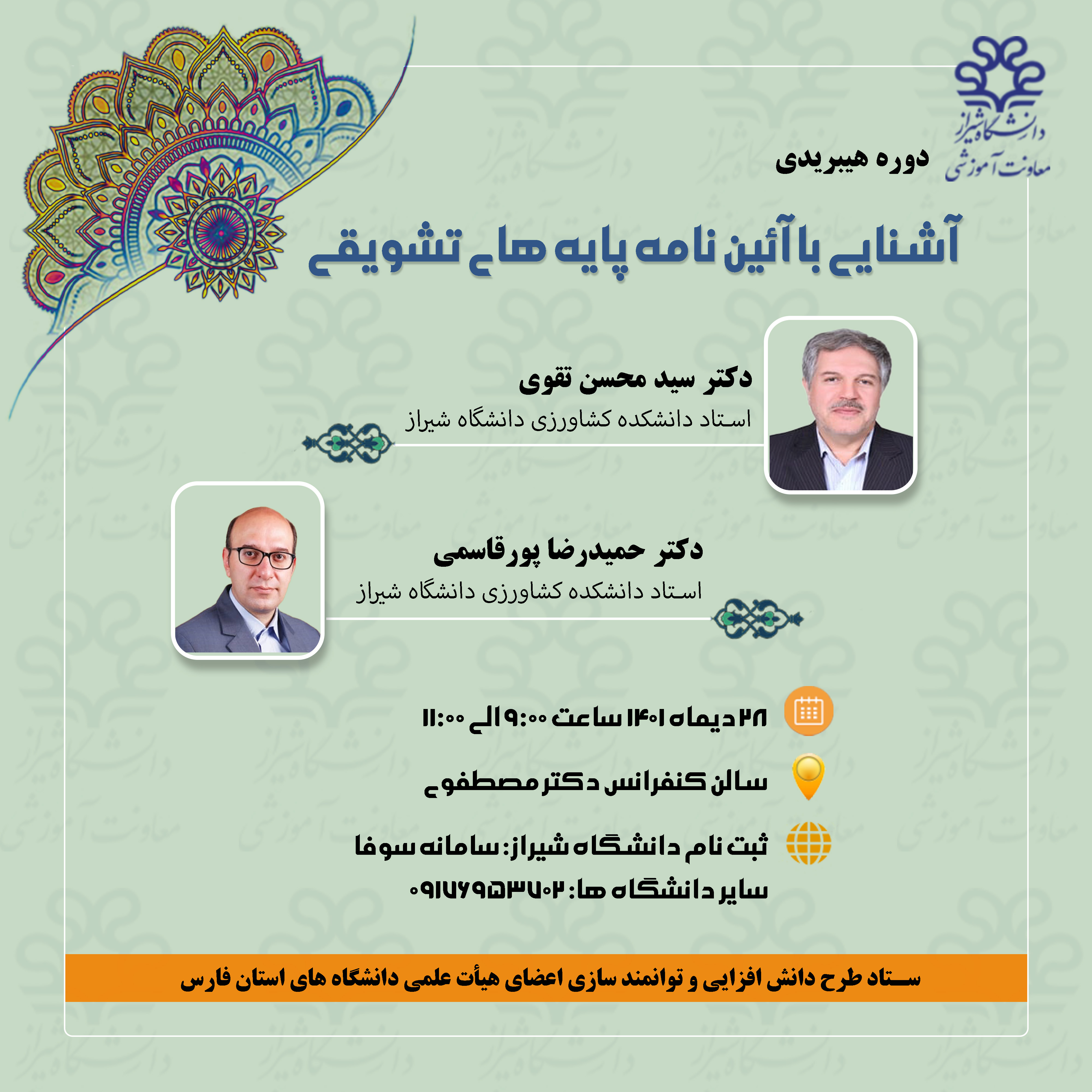 برگزاری دوره آموزشی آشنایی با آئین نامه پایه های تشویقی توسط دانشگاه شیراز