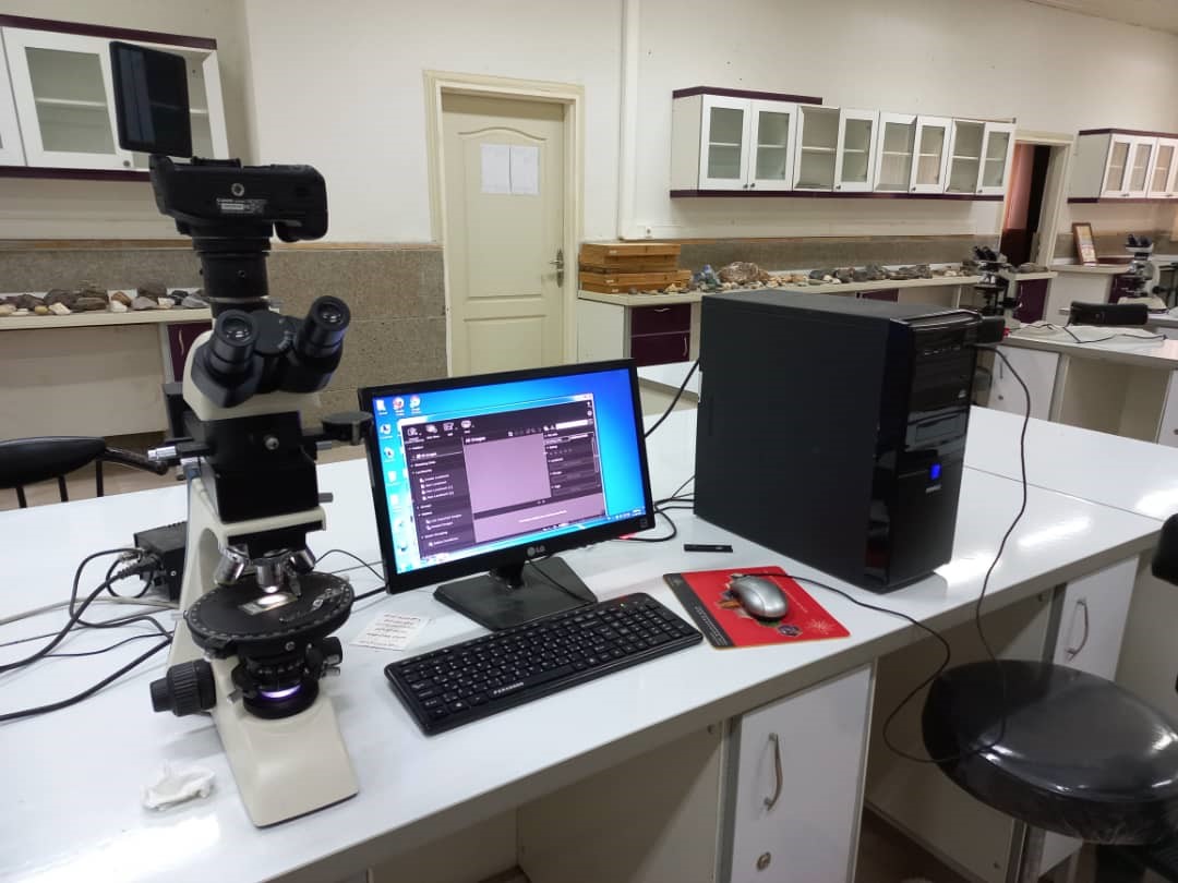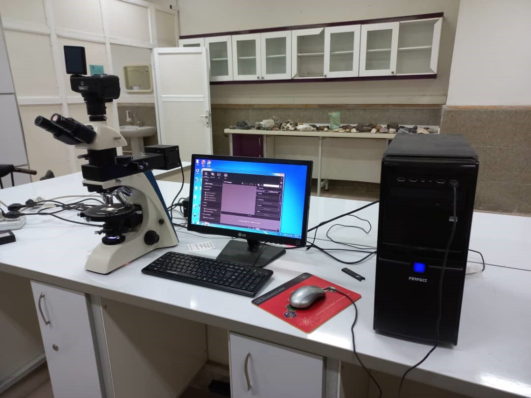 میکروسکوپ پلاریزان در آزمایشگاه زمین شناسی جهت تهیه عکس از مقاطع نازک صیقلی