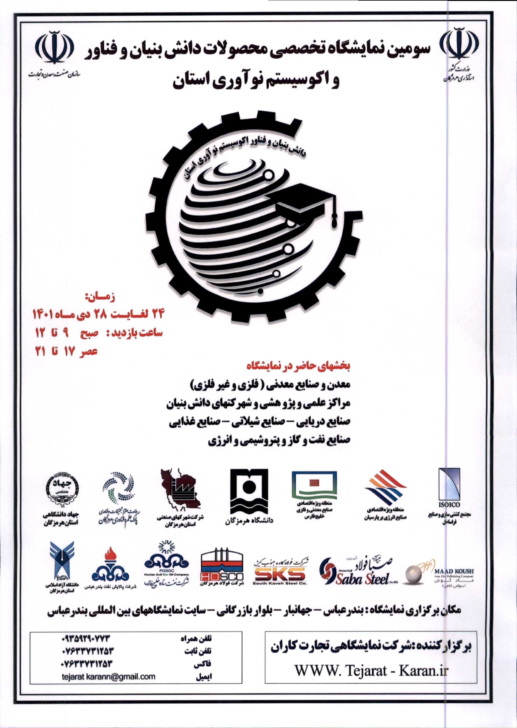 برگزاری سومین نمایشگاه تخصصی محصولات دانش بنیان و فناور اکوسیستم نوآوری استان