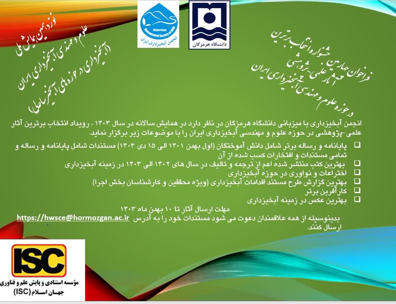 فراخوان انتخاب بهترین رساله، پایان نامه و کتاب در حوزه تخصصی علوم و مهندسی آبخیزداری