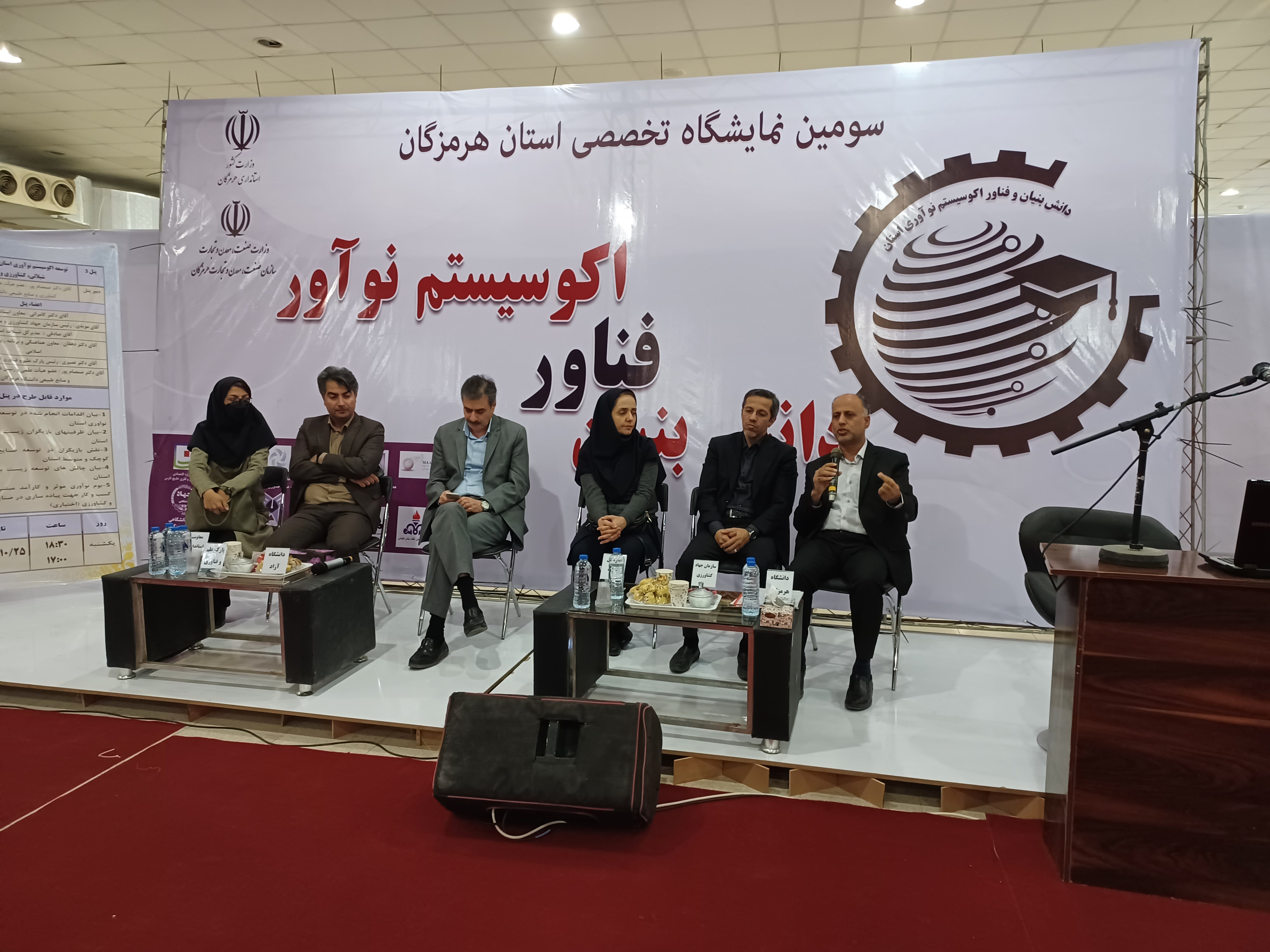 در حاشیه این نمایشگاه، نشست تخصصی با عنوان "توسعه اکوسیستم نوآوری استان با محوریت صنایع شیلاتی، کشاورزی و غذایی" در عصر روز یکشنبه برگزار گردید. در این نشست که ریاست آن بر عهده جناب آقای دکتر صمصامپور به عنوان عضو محترم هیات علمی و رئیس دانشکده کشاورزی و منابع طبیعی دانشگاه هرمزگان بود، با حضور جناب آقای مهندس مویدی بهعنوان رئیس سازمان جهاد کشاورزی استان هرمزگان، جناب آقای دکتر اعتمادی پور به عنوان معاون پارک علم و فناوری استان هرمزگان به همراه تنی چند از مسوولین محترم استانی از سازمان شیلات و سازمان برنامه و بودجه، ظرفیتهای مختلف استان هرمزگان در زمینه های کشاورزی، منابع طبیعی و شیلات در راستای توانمندسازی شرکتهای فناور و دانش بنیان مورد بررسی قرار گرفت.