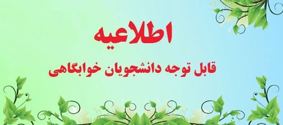 به اطلاع کلیه دانشجویان محترم ساکن در خوابگاه می رساند با توجه به تعطیلات عید نوروز رعایت موارد زیر الزامی می باشد: