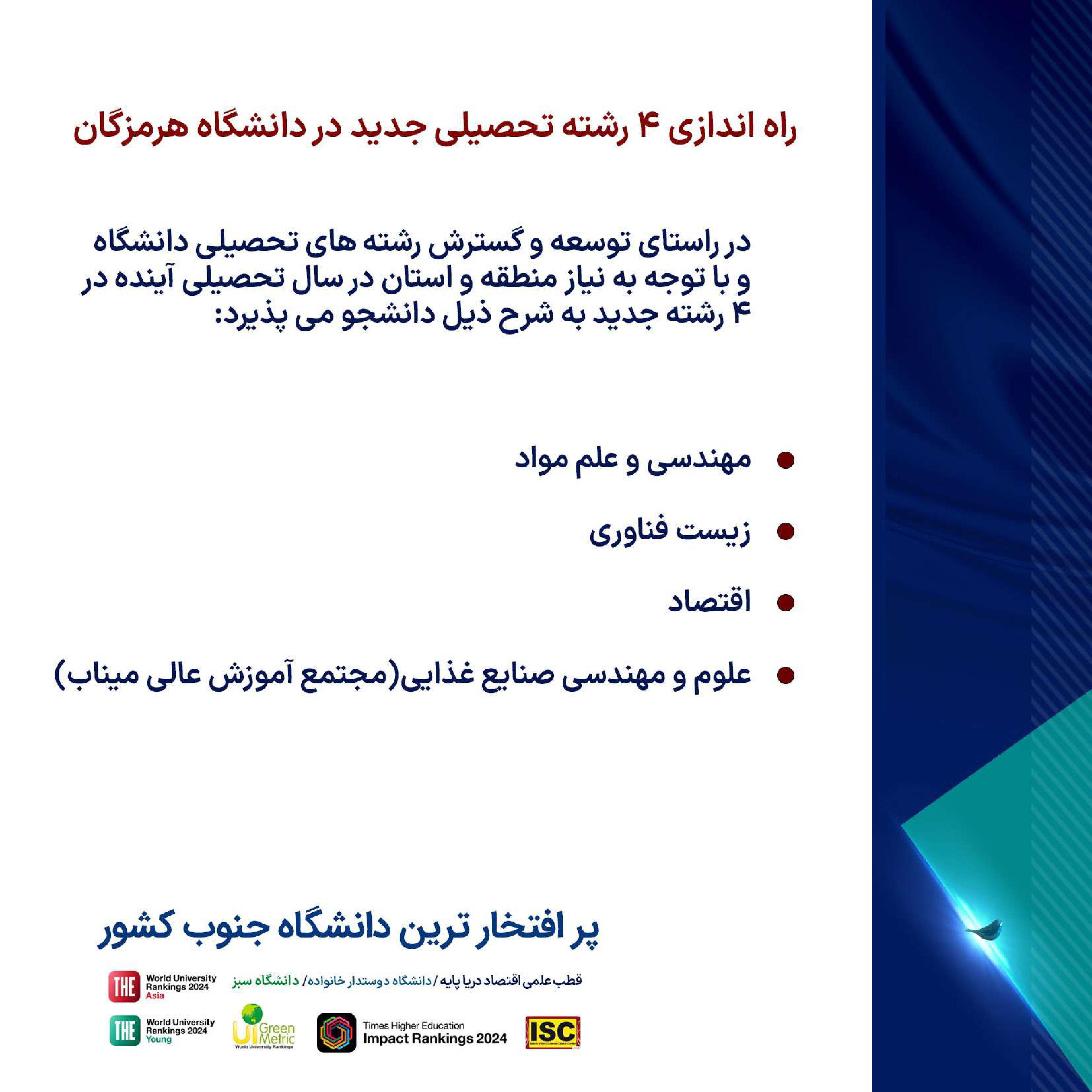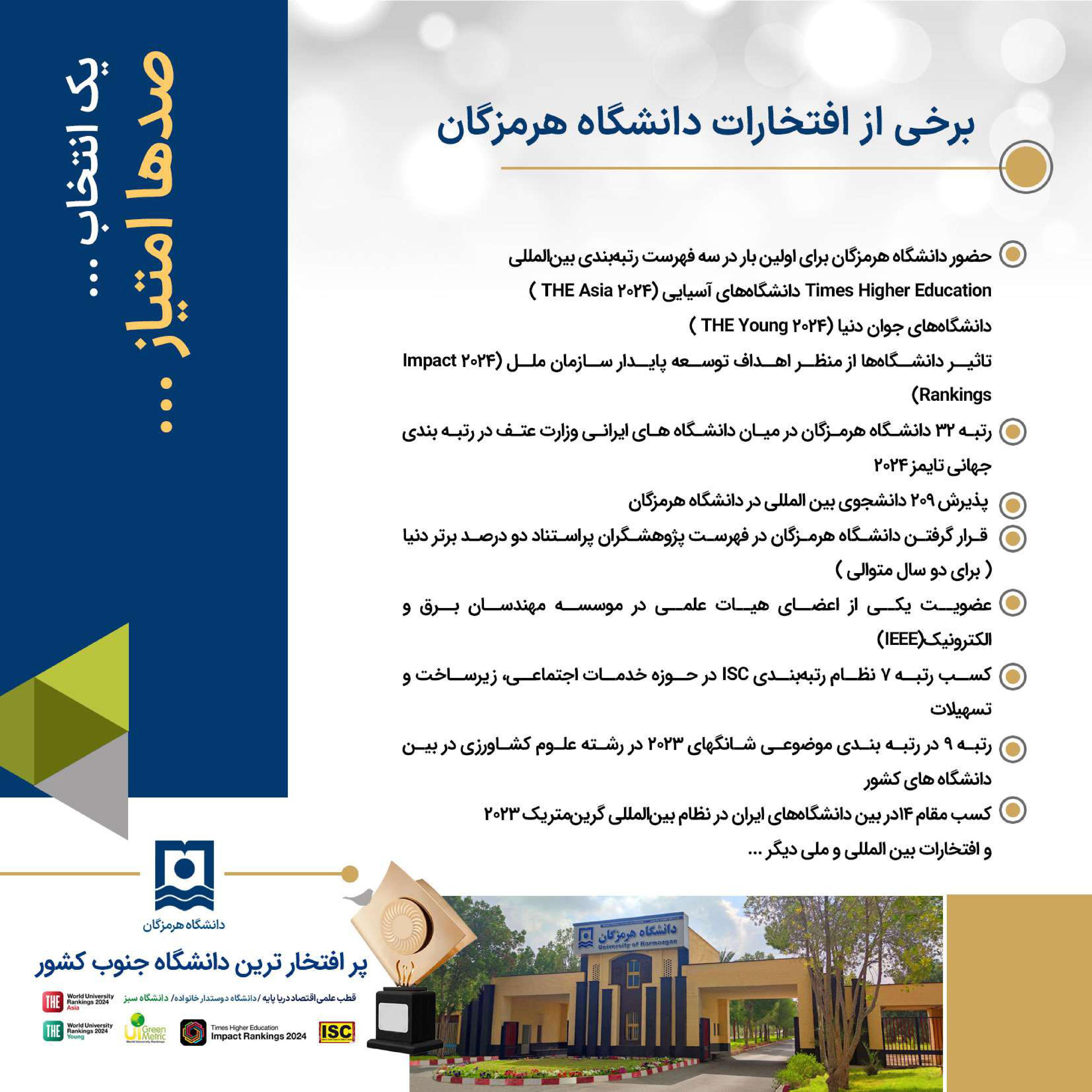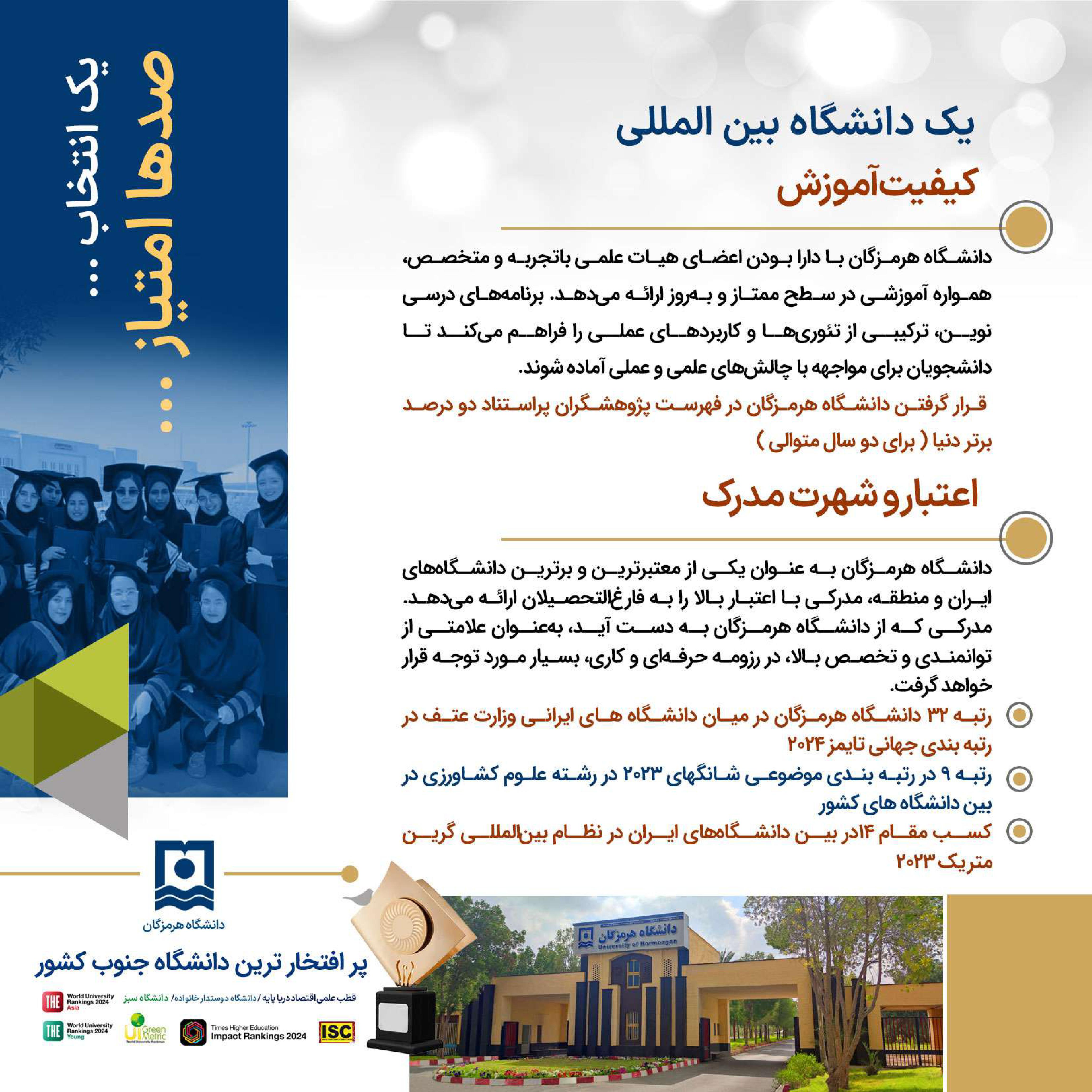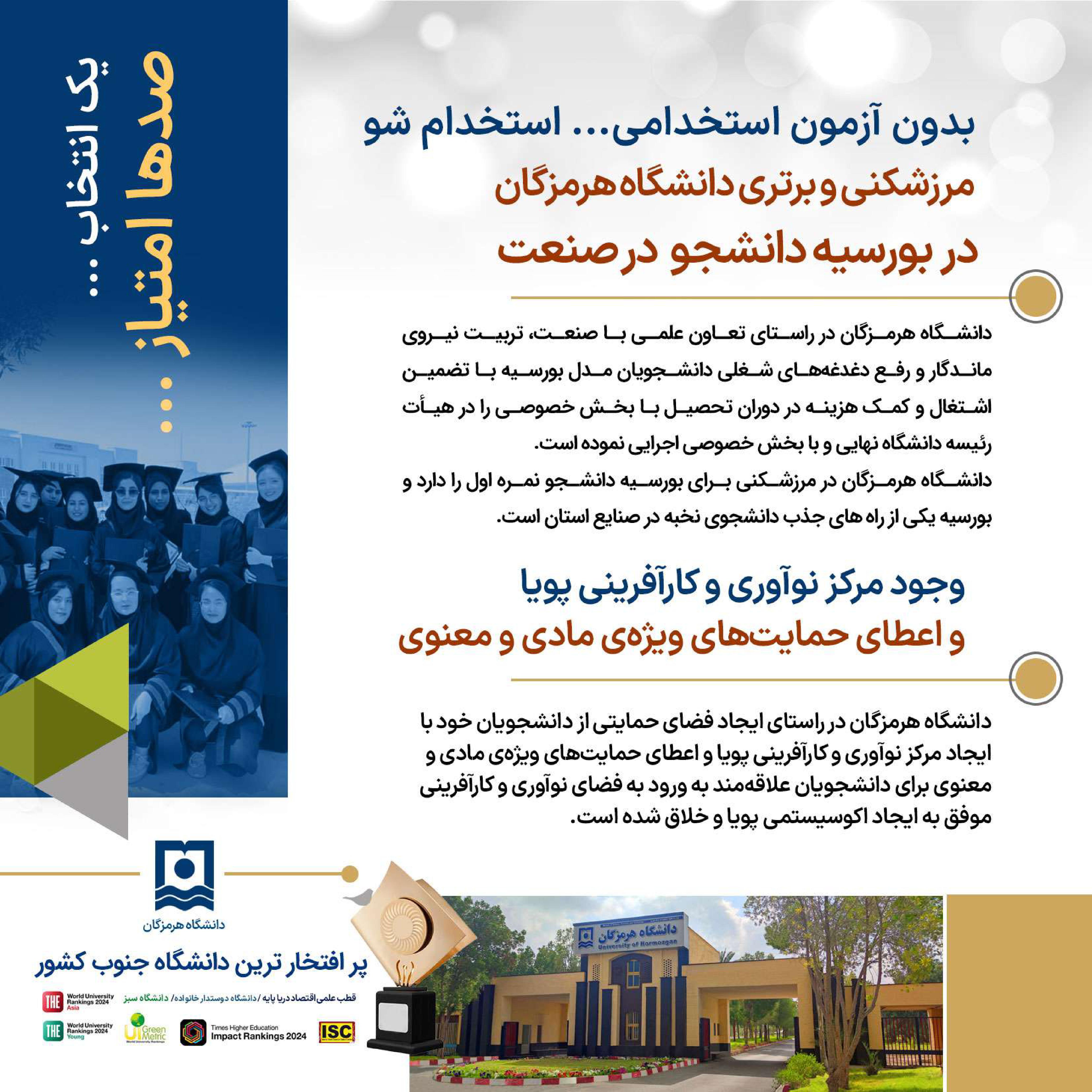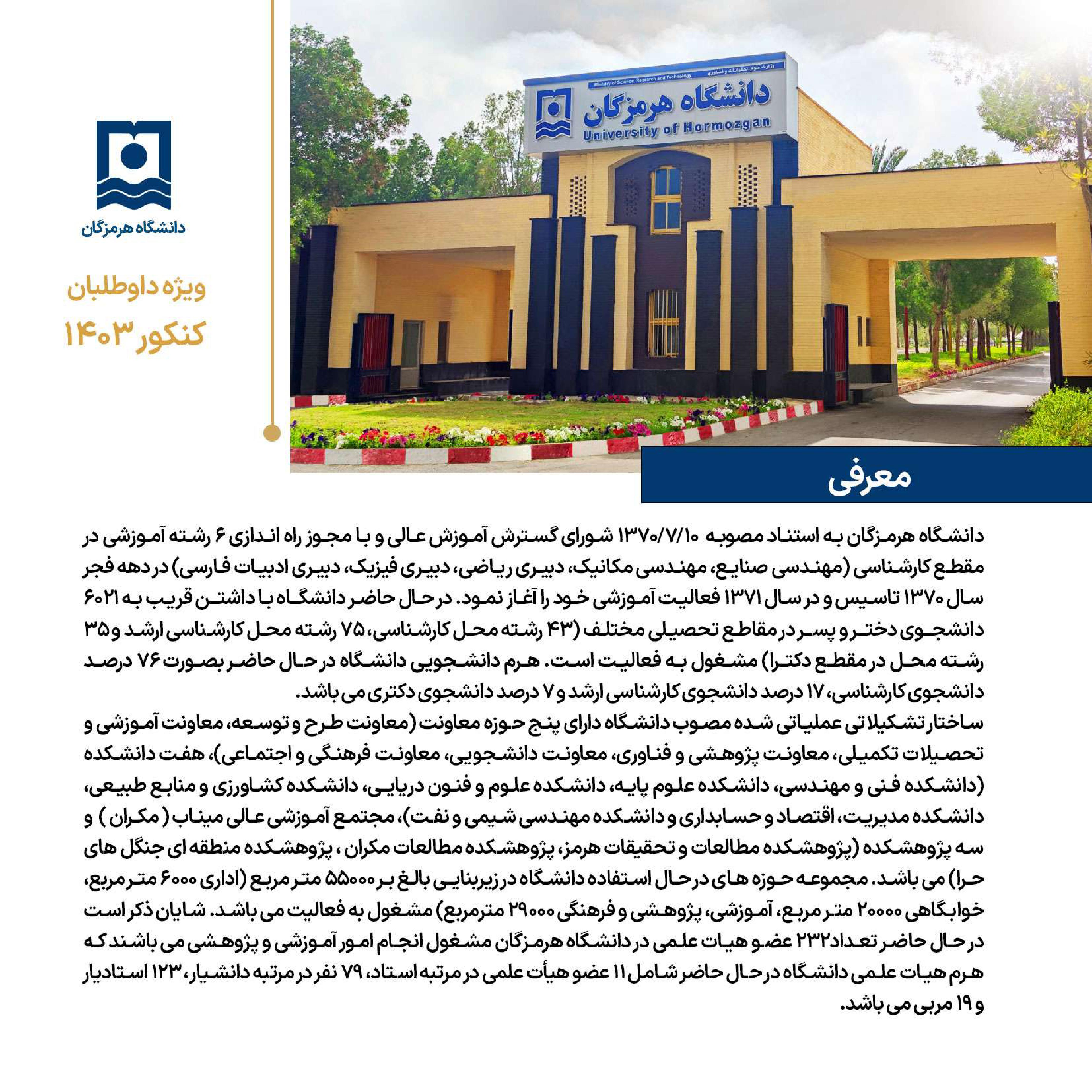 دانشگاه هرمزگان ، انتخاب آینده ای روشن ... فرصت تحصیل در پر افتخارترین دانشگاه جنوب کشور