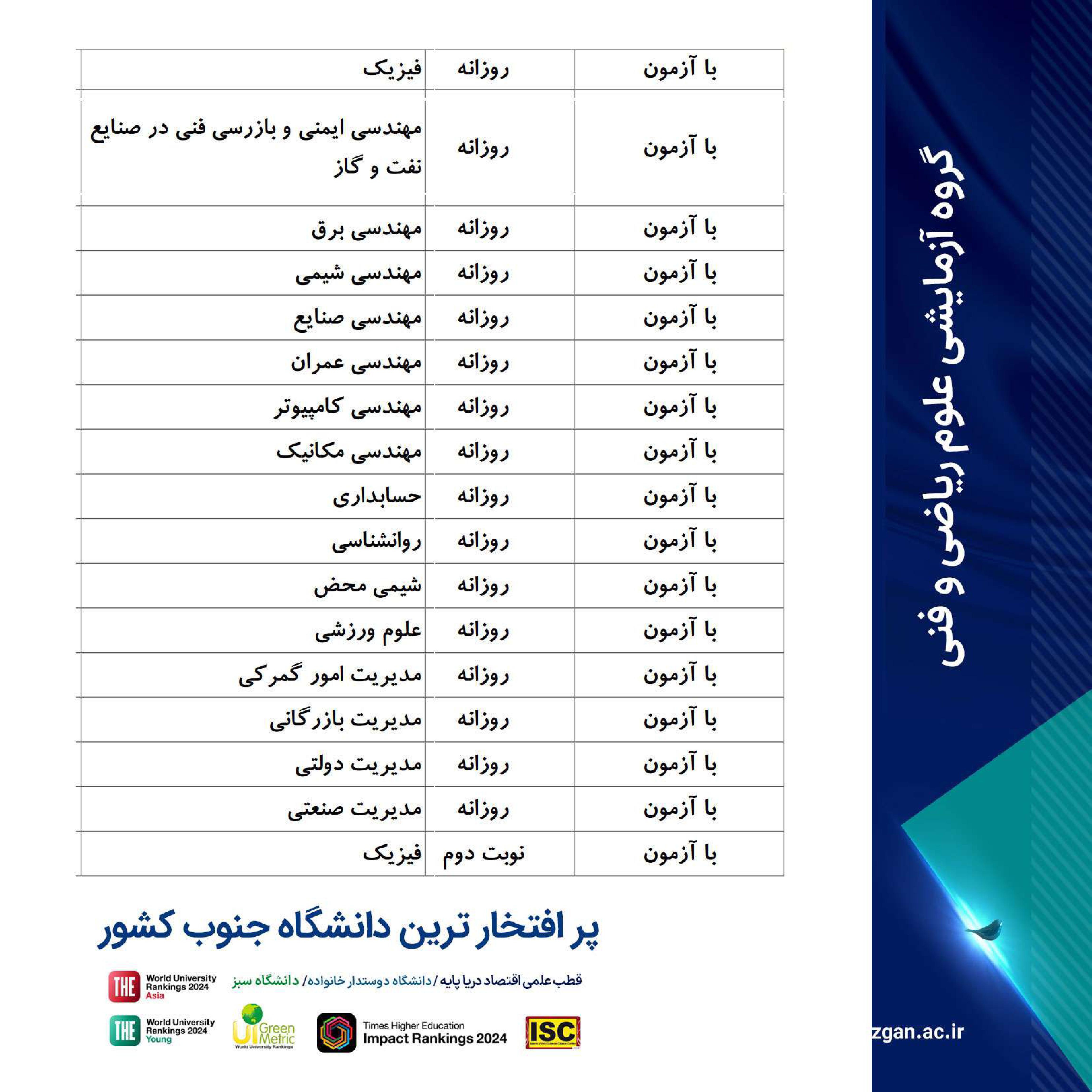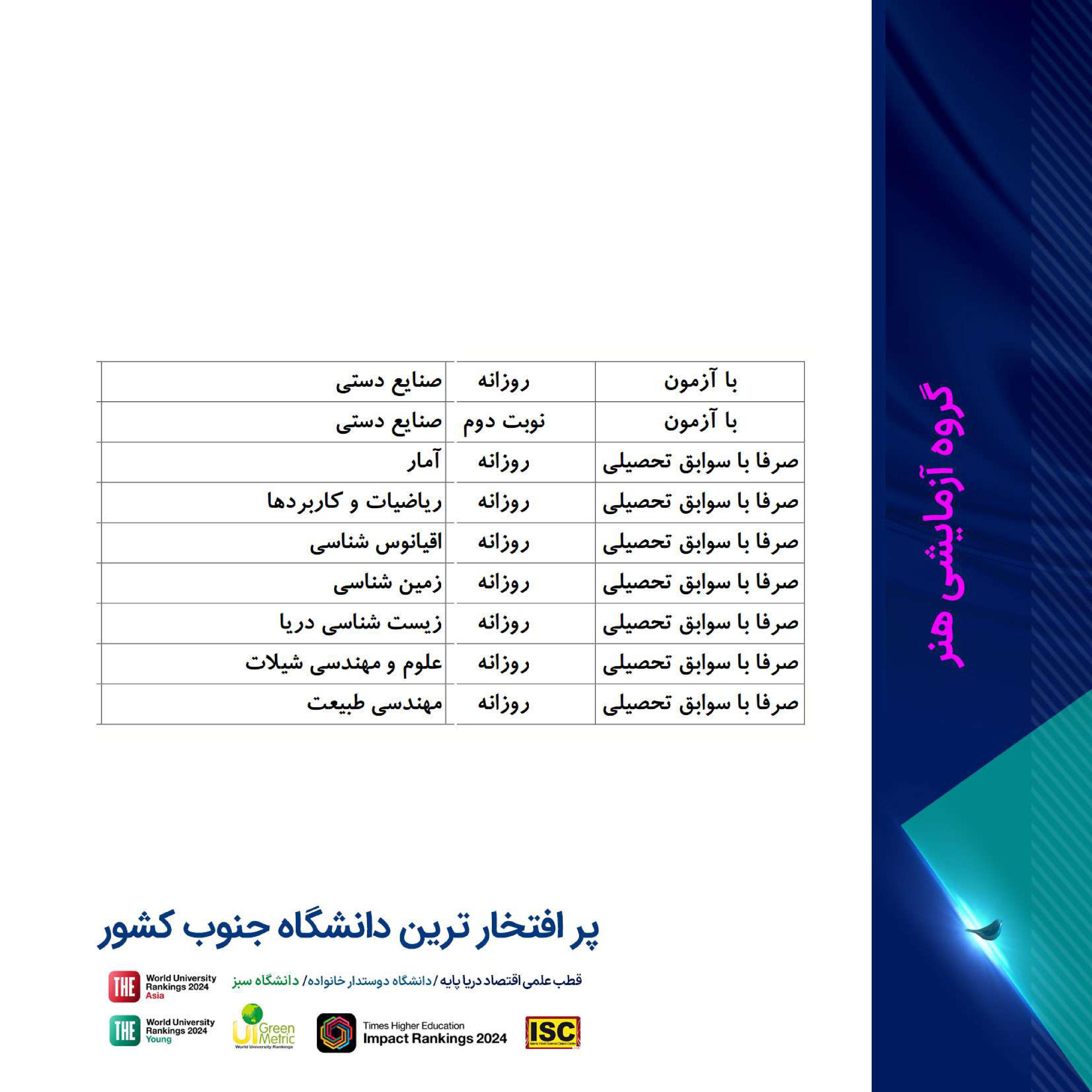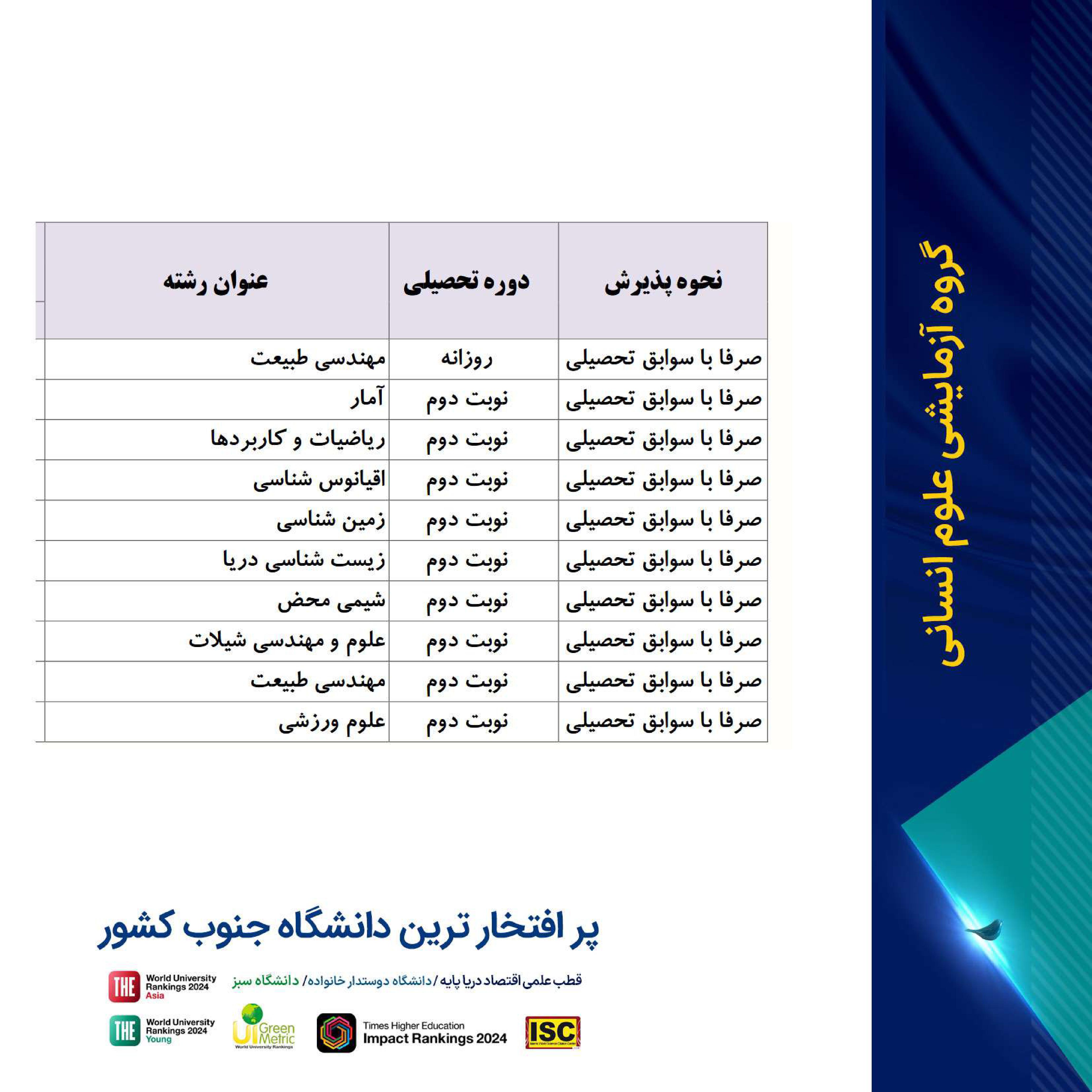 فرصت تحصیل در پر افتخارترین دانشگاه جنوب کشور