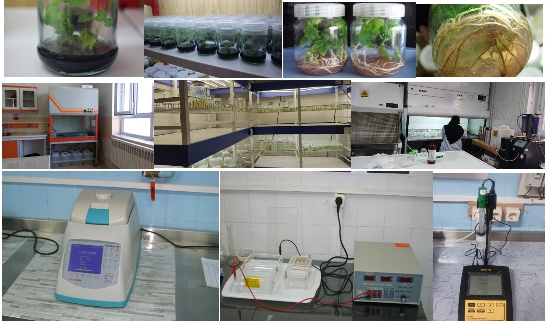 دستگاه آب مقطرگيري (یکبار و دوبار تقطیر)، آون، اتاق كشت، اتاق رشد، هود استريل، اتوكلاو، لامیناتور، استيرر، پاور سوپلای، الكتروفورز، بنماري، بيوفتومتر، pHمتر، تانك نيتروژن، ترازوي ديجيتال چهار صفر، ترموسايكر (PCR)، ژلداك، ميكروسانتريفيوژ، ميكرواسپين، سانتريفيوژ يخچالدار، شيكر اُربيتالي، يخچال4+ و فريزر20-درجةسانتيگراد، مايكروويو، همزن، هموژنايزر، فریزدرایر، کلونجر، مواد مورد نياز برای انواع كشت بافتهاي گياهي و غیره.