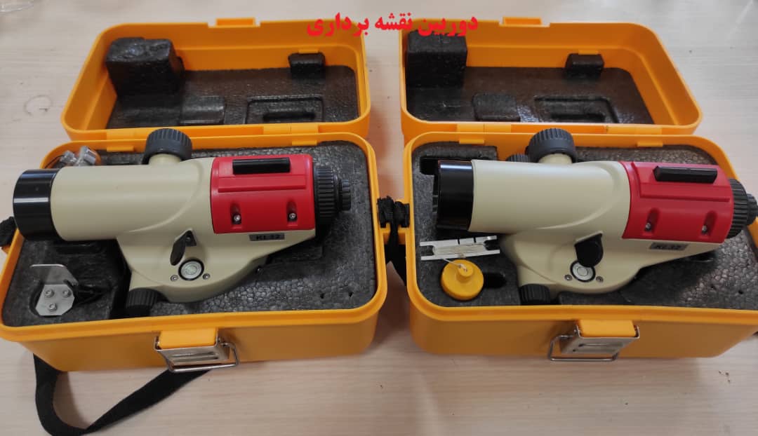 • شامل تجهیزات مرتبط مانند دوربین نقشه برداری، سه پایه، شاخص، ژالن، متر و میزهای نقشه کشی