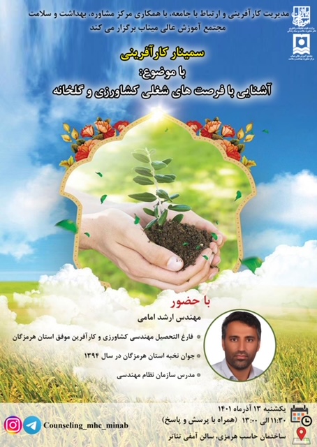 سمینار کارآفرینی در تاریخ یکشنبه ساعت 11:30 الی 13 برگزار گردید.