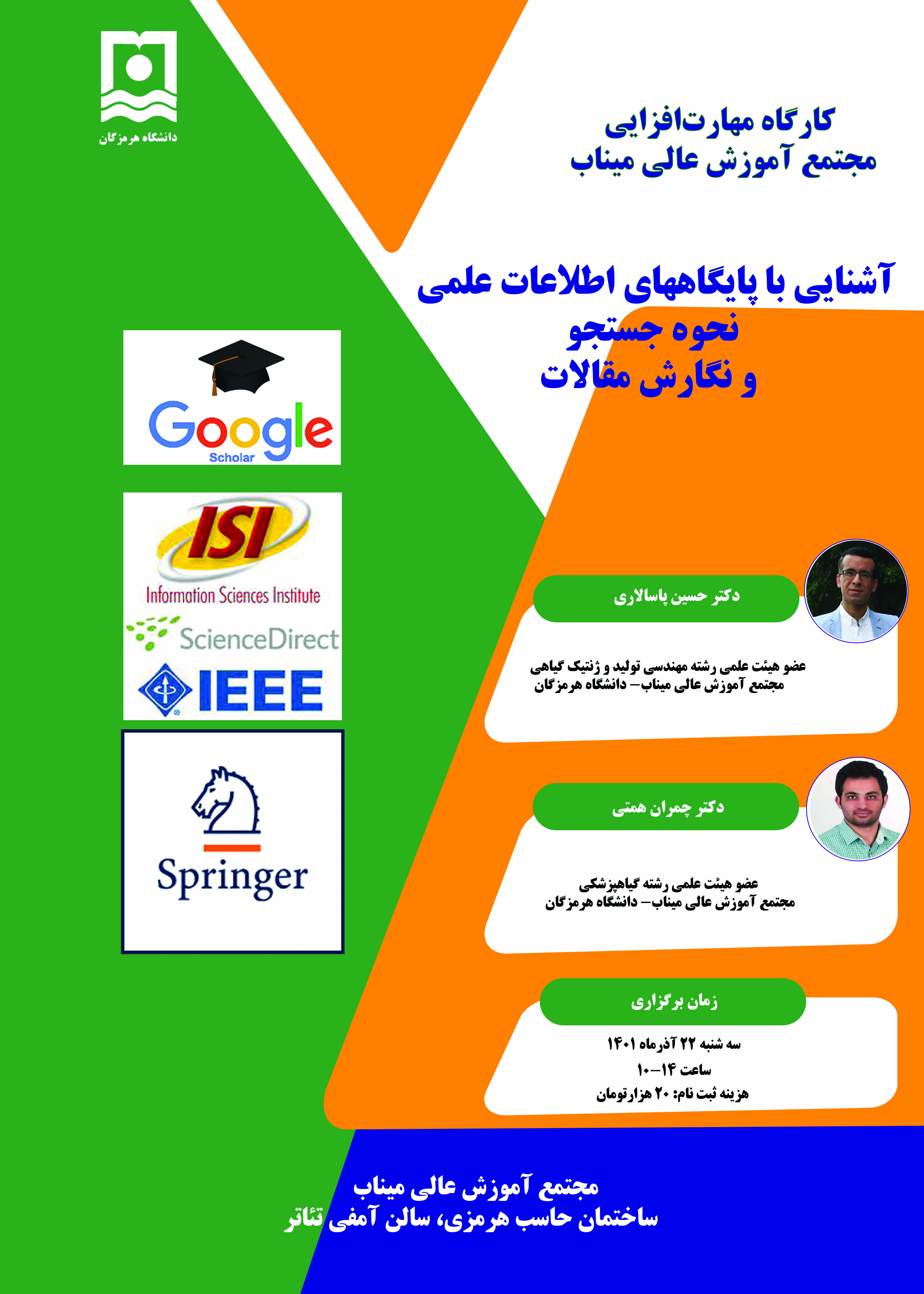 معاونت آموزش و پژوهش مجتمع آموزش عالی میناب اقدام به برگزاری کارگاه های مهارت افزایی ویژه دانشجویان می نماید.