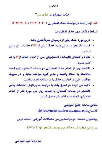 حذف اضطراری(حذف تک درس) و حذف ترم